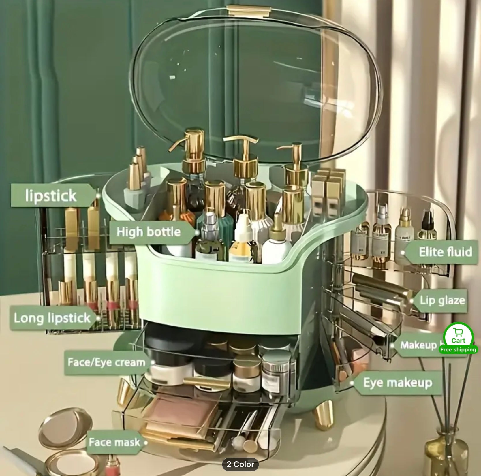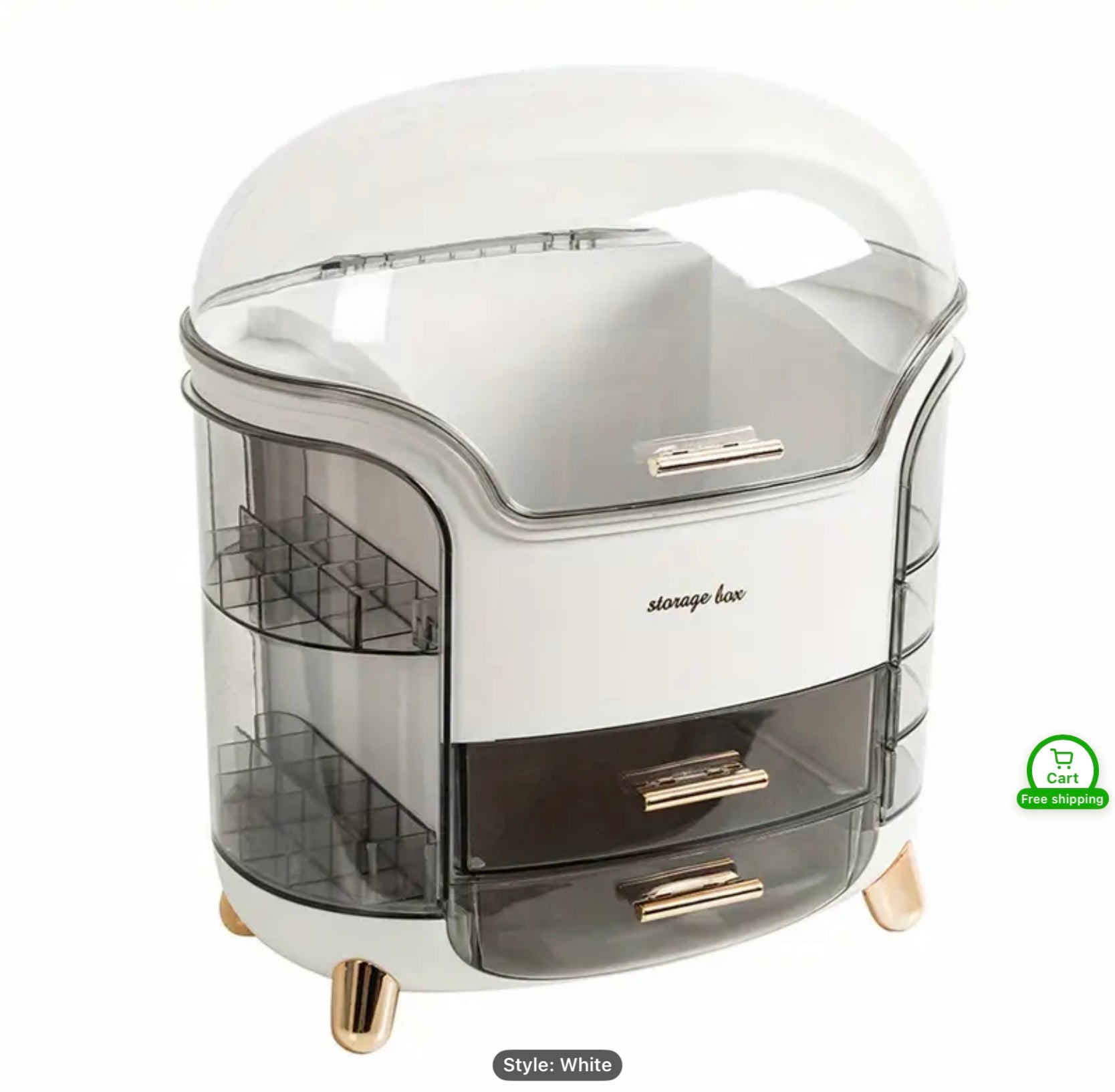 Keep your vanity neat and stylish with this all-in-one Large Capacity Cosmetic Storage Box. Designed for modern beauty lovers, this organizer features a dustproof clear lid, a spacious pull-out drawer, and multiple compartments to hold all your skincare, makeup, and beauty essentials. Perfect for countertops and dressers, it keeps everything visible and within easy reach while protecting your products from dust and spills.