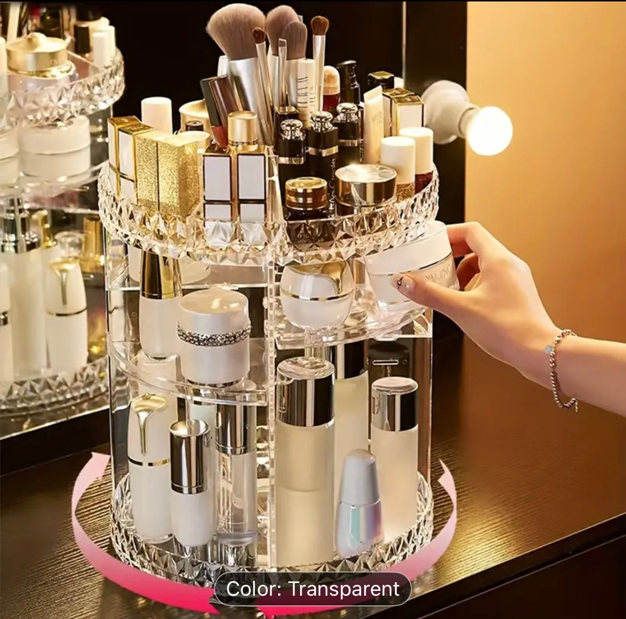 3-Tier Transparent Cosmetic Organizer - Stand for Brushes, Lipstick, Perfume, Nail Polish.
