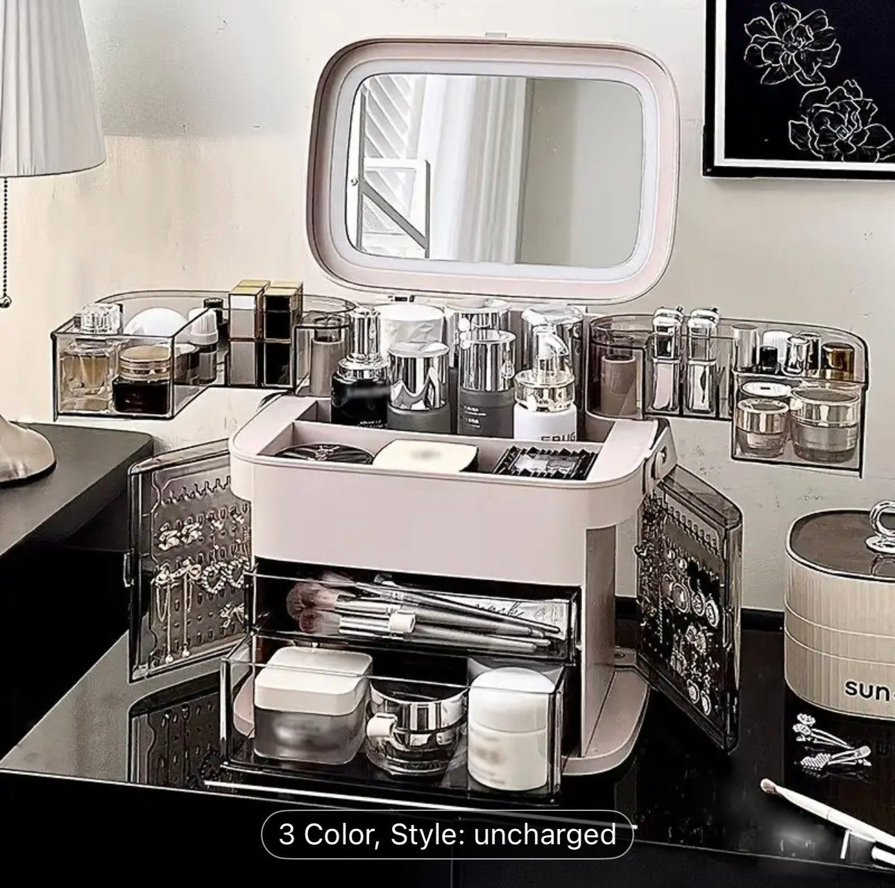 • Spacious layout for makeup, skincare & jewelry