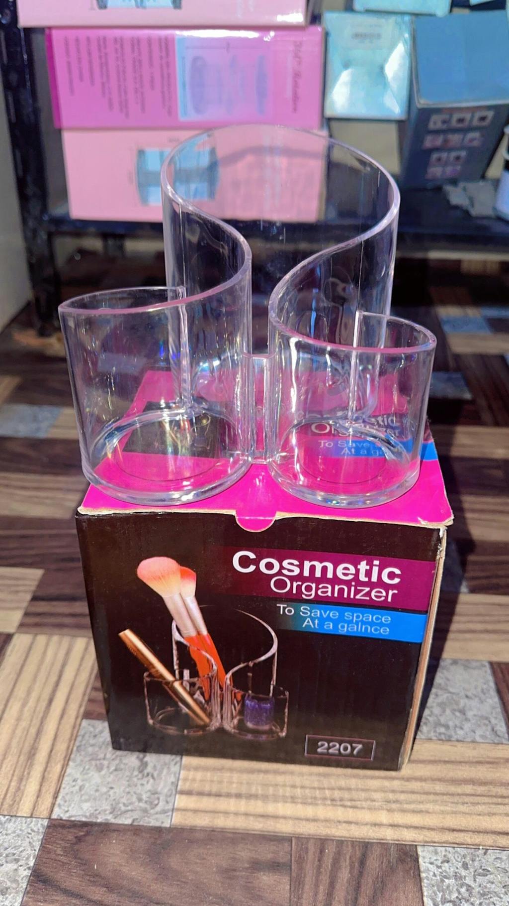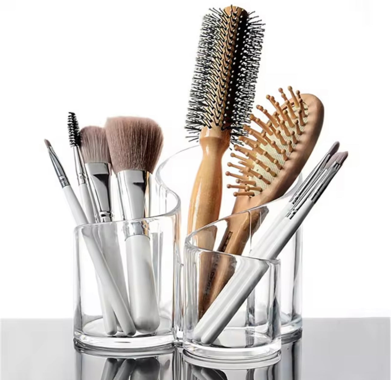 Add style and order to your vanity with our S-Shaped Clear Acrylic Makeup Organizer. Designed with three spacious compartments, this organizer is perfect for storing lipsticks, makeup brushes, eyeliners, skincare bottles, and more.